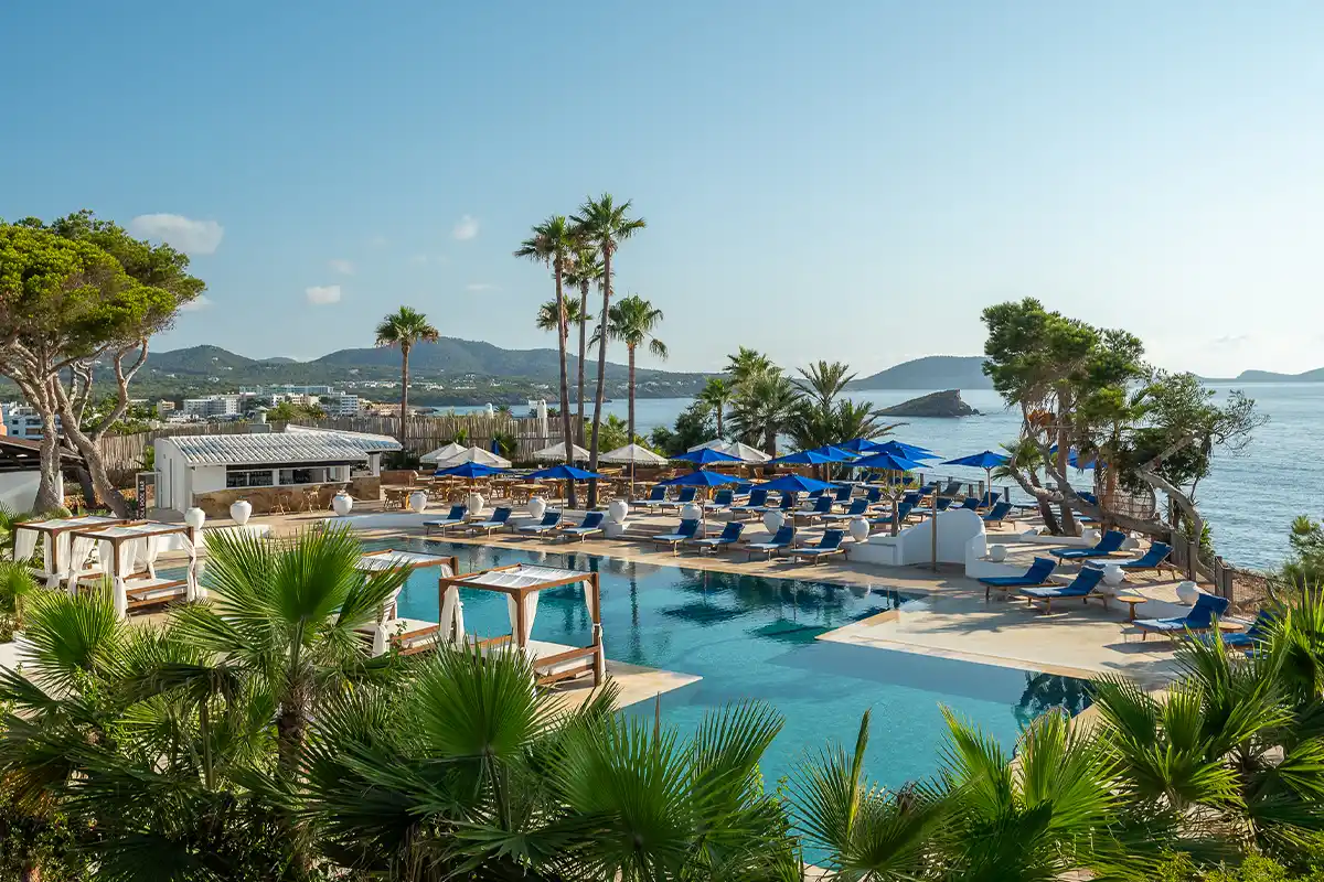 Set among pine trees and by the sea, this four-star hotel offers a complete experience with gastronomy, live music and spaces designed to enjoy Ibiza in an authentic way.