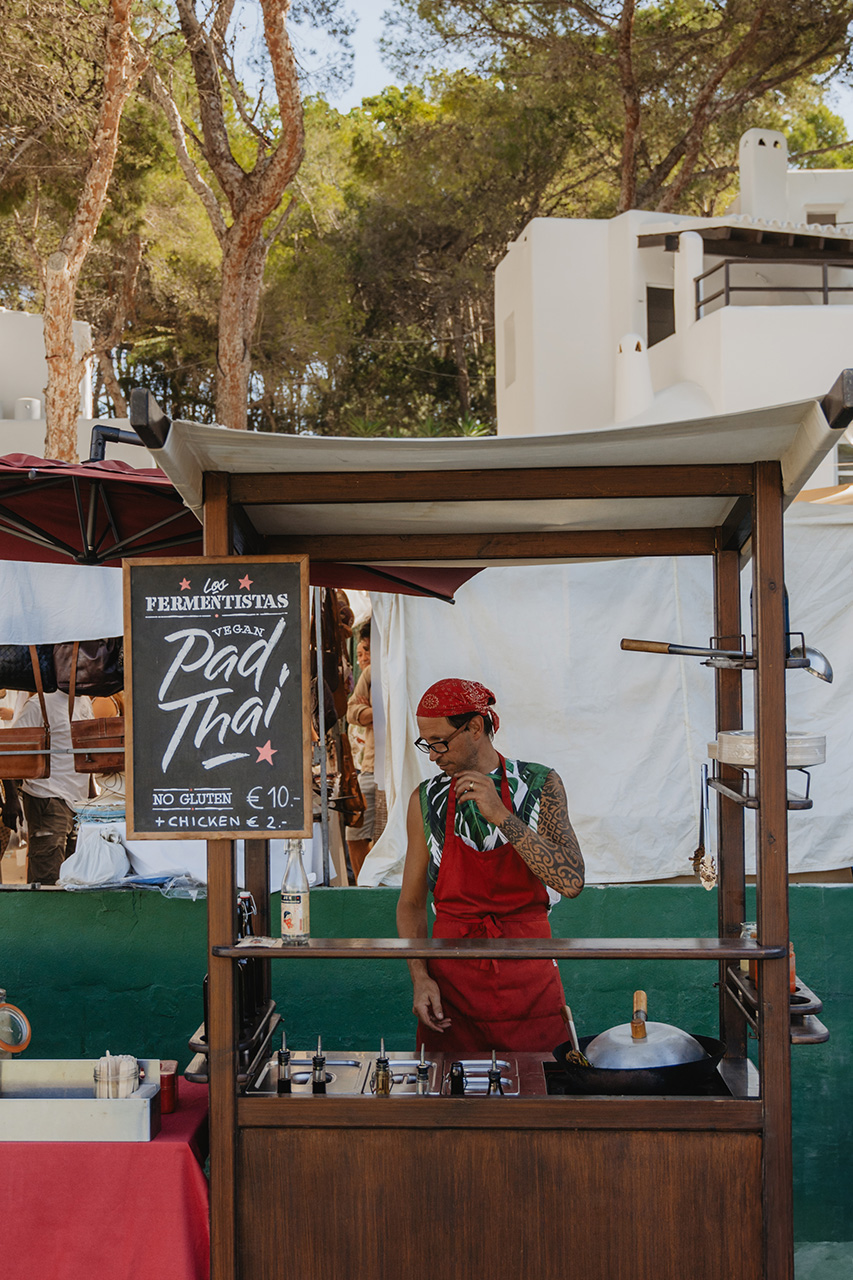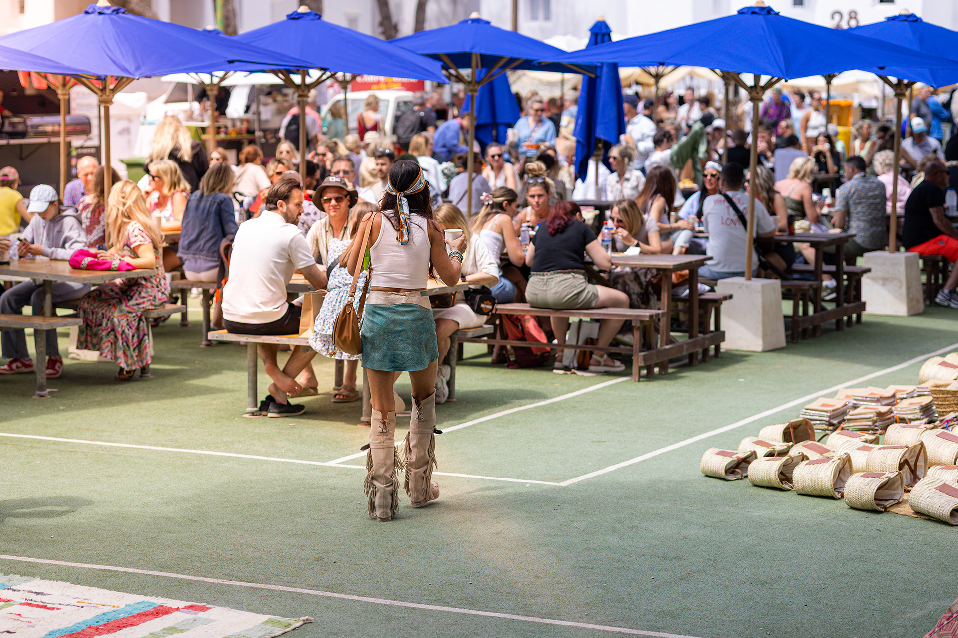 Ubicados en el corazón del mercado, los food trucks forman un espacio lleno de vida y movimiento, perfecto para hacer una pausa mientras sigues explorando. Con música en vivo, este rincón gastronómico crea un ambiente mediterráneo y multicultural, donde puedes descansar, socializar y disfrutar de la auténtica vibra de Ibiza.